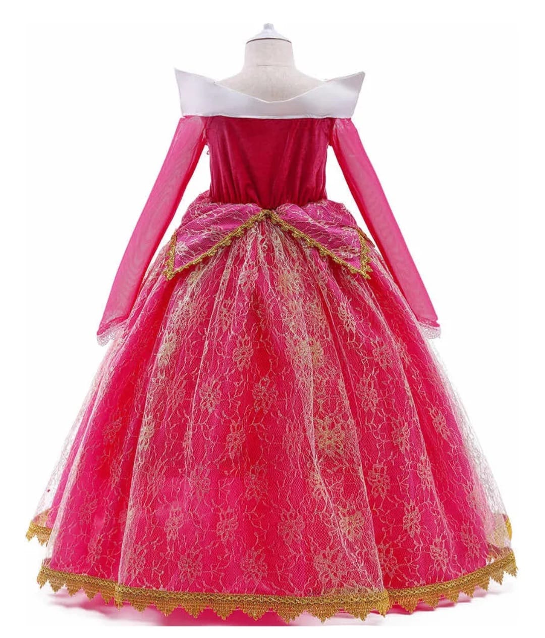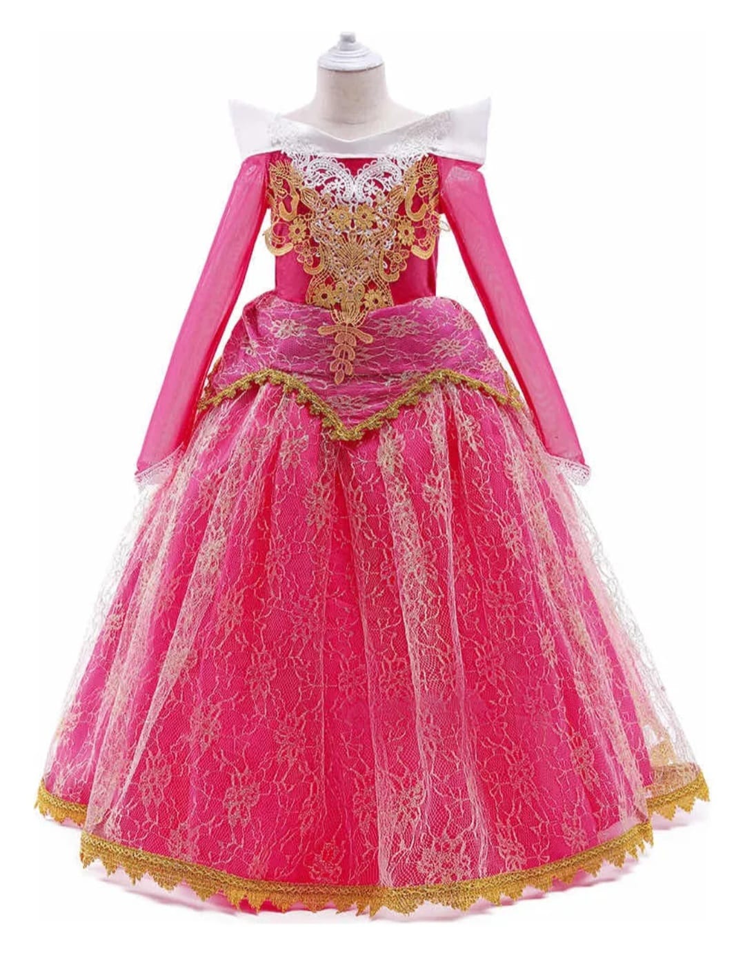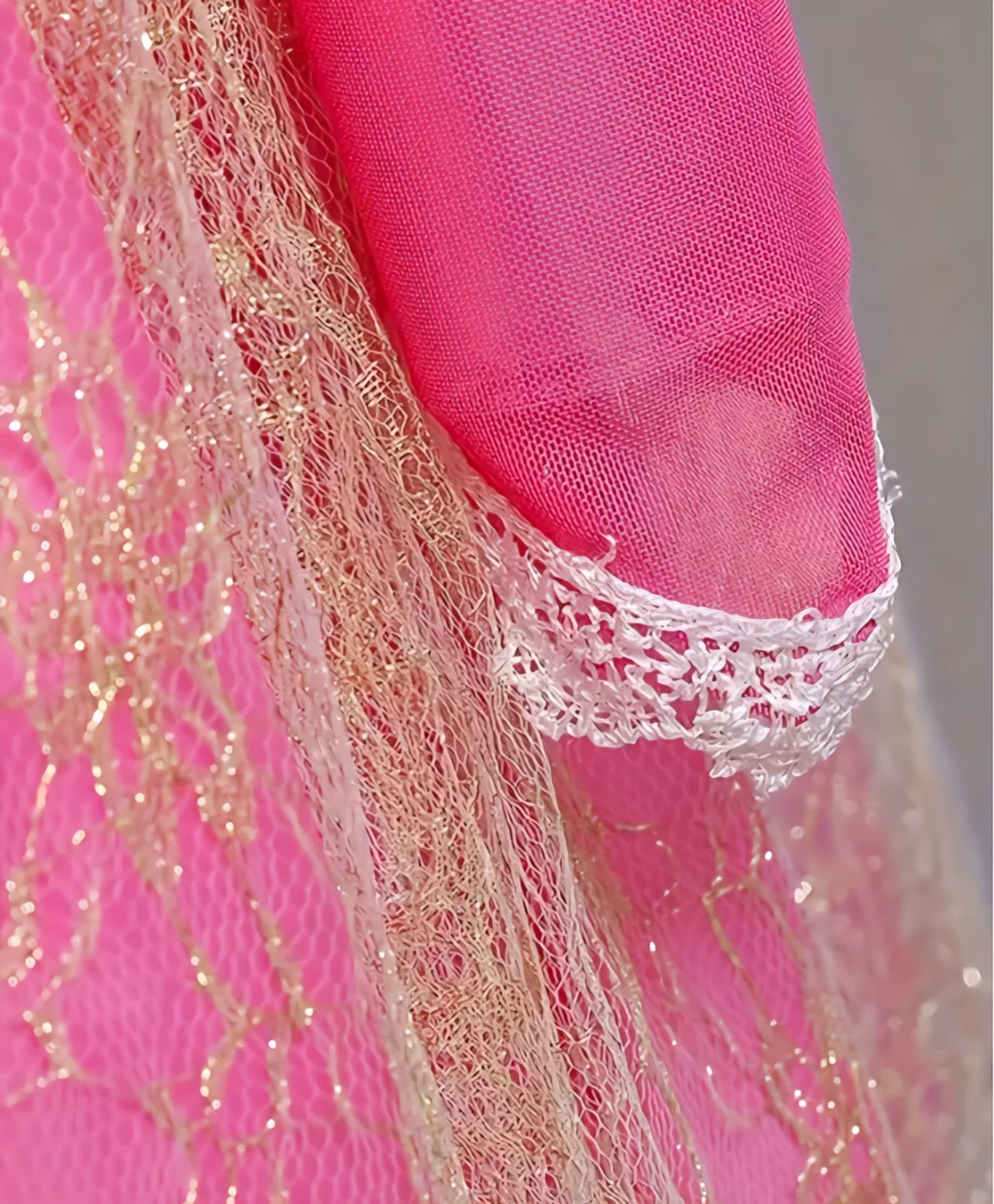Color rosa intenso con delicado encaje dorado y apliques bordados.